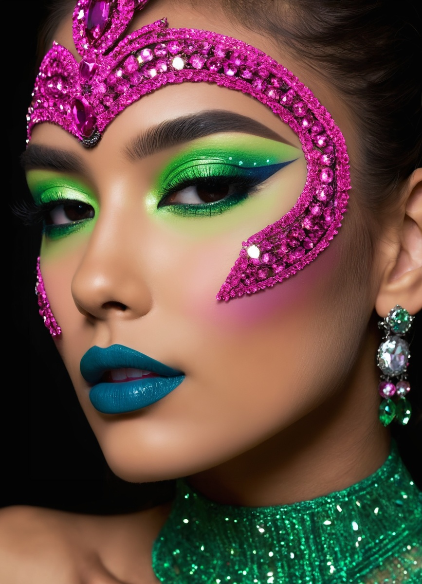 Неоновые оттенки, такие как ярко-розовый, зеленый или синий, становятся основой для создания эффектного макияжа, в то время как стразы служат завершающим акцентом, придающим образу искрящийся эффект. Комбинирование различных текстур и форм позволяет достичь уникальности и индивидуальности. Осваивая техники нанесения, можно создать макияж, который станет отражением внутреннего мира и настроения, подчеркивая личный стиль.