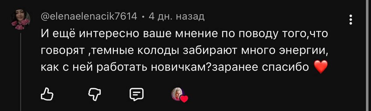 ? Под видео мне задали очень интересный вопрос: "И ещё интересно ваше мнение по поводу того, что говорят — темные колоды забирают много энергии, как с ними работать новичкам?" Давайте разберёмся раз и навсегда. Темные колоды не «крадут» вашу энергию. Все эти истории — миф. Колода — инструмент, а не самостоятельная сила. Как нож может резать хлеб или поранить — зависит от того, кто им пользуется. Так же и карты: они отражают вашу энергию, ваши намерения и внимание. Новичок тоже может работать с ними — главное подходить с уважением и осознанностью. Темные колоды, такие как Черный Гримуар, не про зло. Они про правду, про подсознание, про то, что обычно скрыто: страхи, блоки, запреты, тень. Именно это делает их «сильными» и «глубокими». Они не «отнимают силы», они показывают, где вы держите себя в рамках и мешаете себе двигаться дальше. Разрушаю три самых популярных мифа о темных колодах: —1— «Притягивают негатив» — нет. Колоды отражают вас, а не «наводят зло». —2— «Только для продви