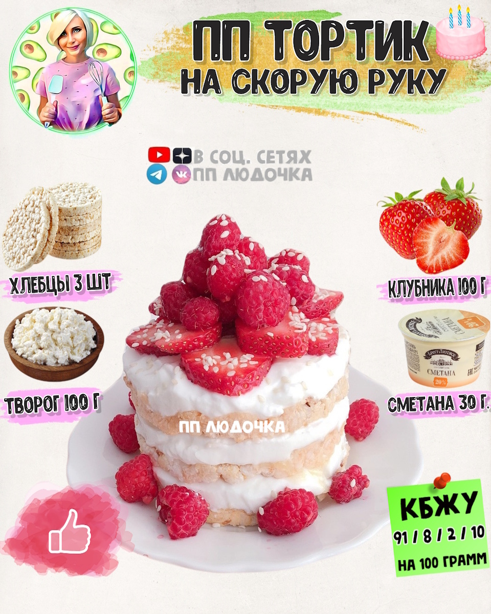 Ягоды можно использовать любые, в крем можно добавить какао и получится уже шоколадный ПП тортик, экспериментируйте🍫