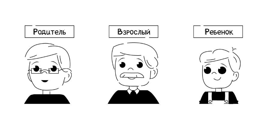 По мнению Берна, внутри каждого человека живут три составляющие - родитель, дитя и взрослый. Родитель строгий, следит за соблюдением правил, может отчитывать и ругать за их несоблюдение собственного внутреннего ребенка и окружающих.