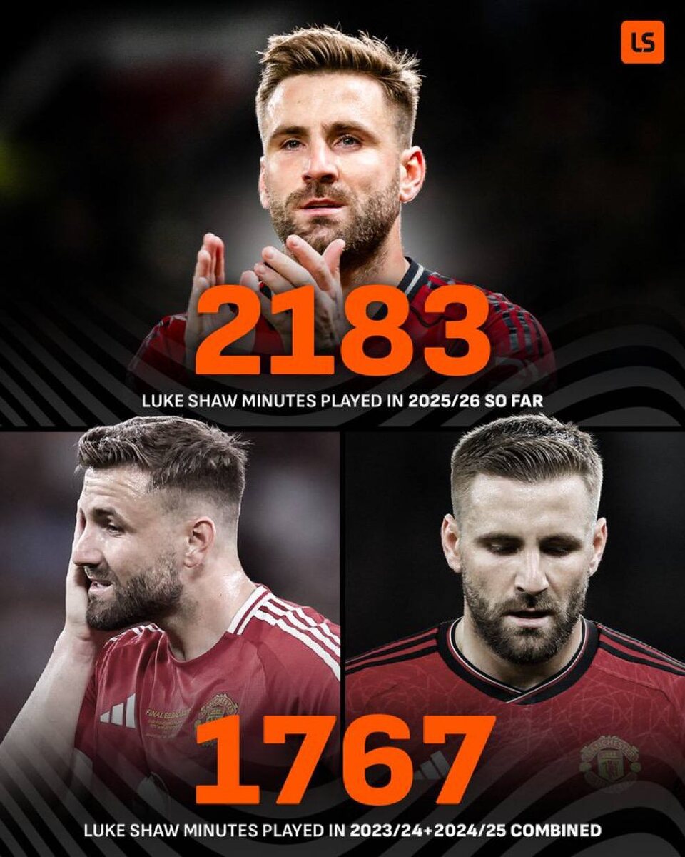 ❗️ | Люк Шоу уже сыграл больше минут в этом сезоне, чем за последние два вместе взятые