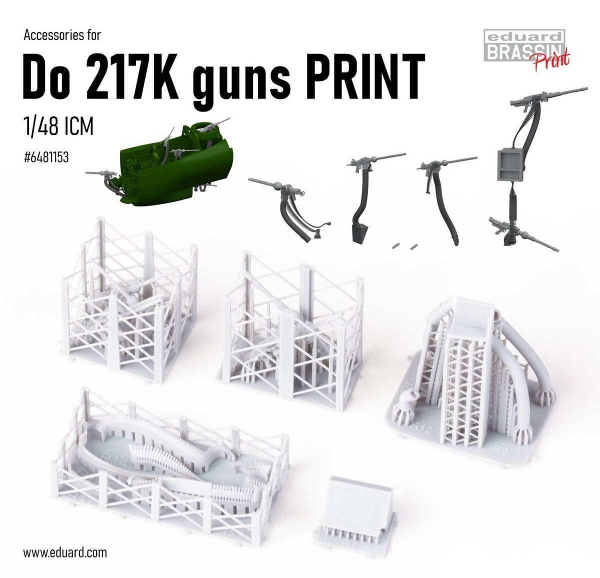Чешская Eduard в серии Brassin выпустила на 3D-принтере набор оборонительного вооружения для модели Do 217K в масштабе 1/48 от ICM: