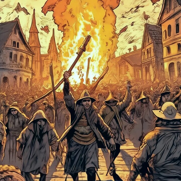 Замок особо не участвовал в погромах. Ворота заперты и уже хорошо. А на стенах лучников не было. Издержался порядок. Толпа, бесновавшаяся с опаской, осмелела. Начали понемногу разбирать ворота, кто топором, кто - бревном. Вразнобой и мешая друг другу, порой и увечья случались. Но, всё стало упорядочиваться. Дувузян наблюдал за хаосом со стороны и отметил то, что замечал при битвах - появился командир у толпы. Человек в сопровождении закованного в латы воина давал указания, что-то пояснял и посылал отдельные группы к замку. Его одежды обьяснили сразу, что это был кардинал, скрышийся из обоза во время битвы. Зачем ему нужно было проломиться в замок, непонятно, если казну выгребал его служитель, но затея любопытная.