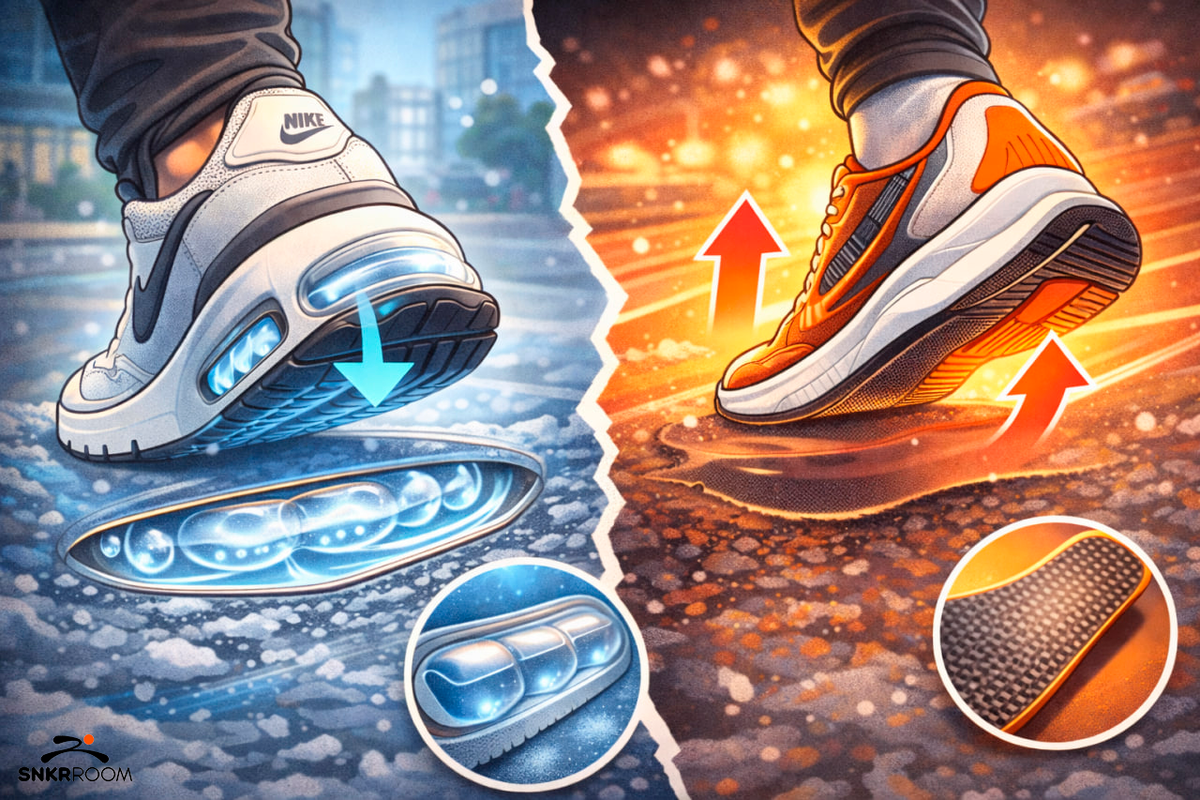 Всем привет! На связи команда SNKRROOM. Сегодня мы разбираем две детали в конструкции кросс, которые выглядят как декоративные вставки, но на деле сильно меняют ощущения от пары: воздушные камеры и пластины в подошве. Если вам интересны такие разборы технологий — заглядывайте в наш Telegram-канал. Там мы регулярно выкладываем короткие шпаргалки и объясняем, что действительно влияет на удобство обуви.