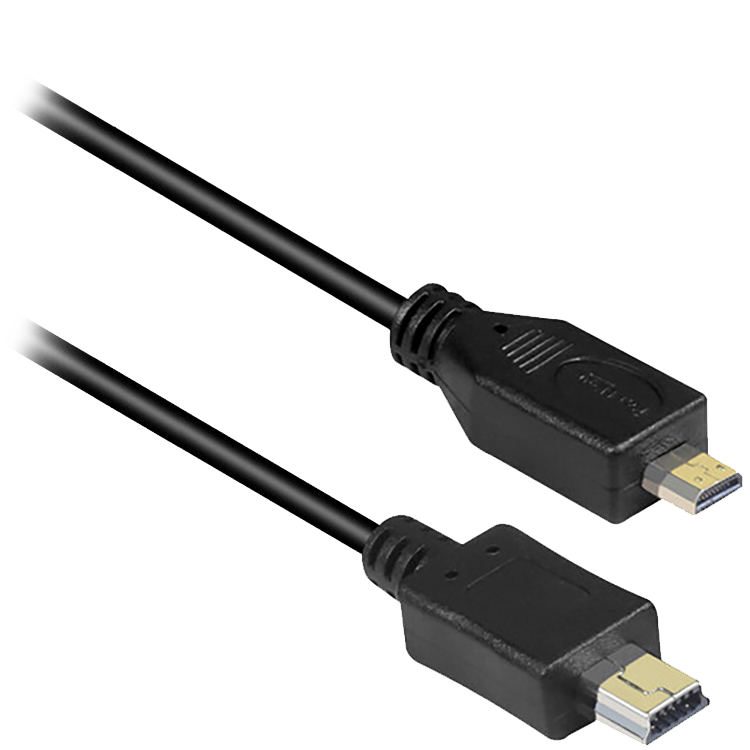 Кабель имеет подключение micro USB с 5 пинами и mini USB с 10 пинами.