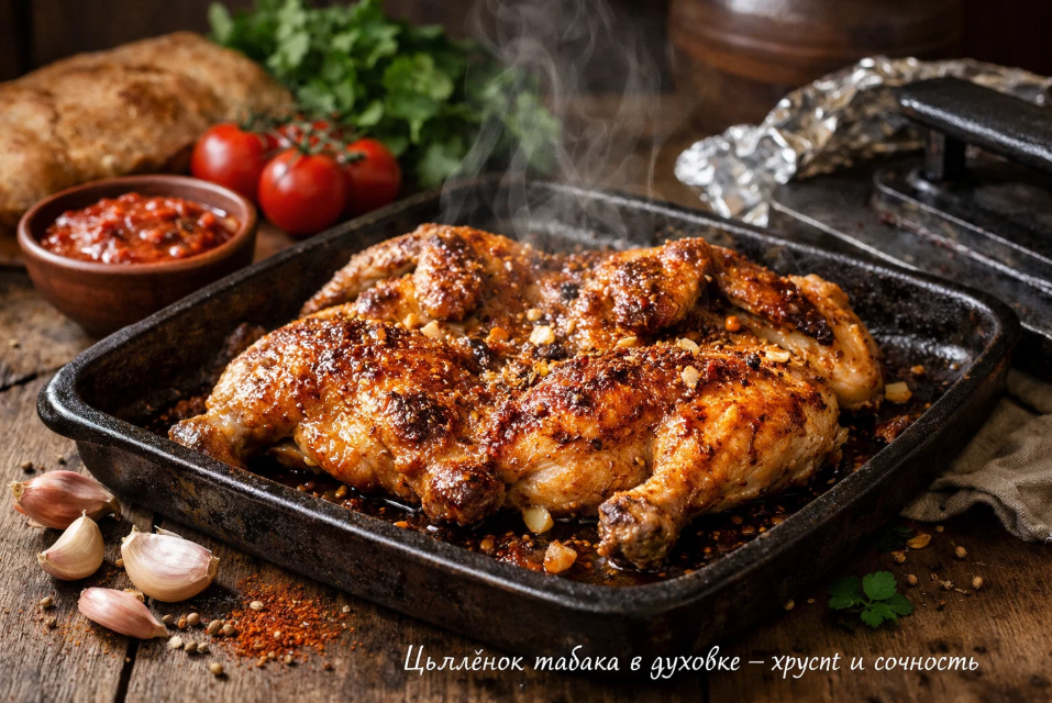 В этой статье я подробно расскажу, как приготовить настоящего цыплёнка табака в духовке так, чтобы он получился не хуже ресторанного, а иногда и лучше.