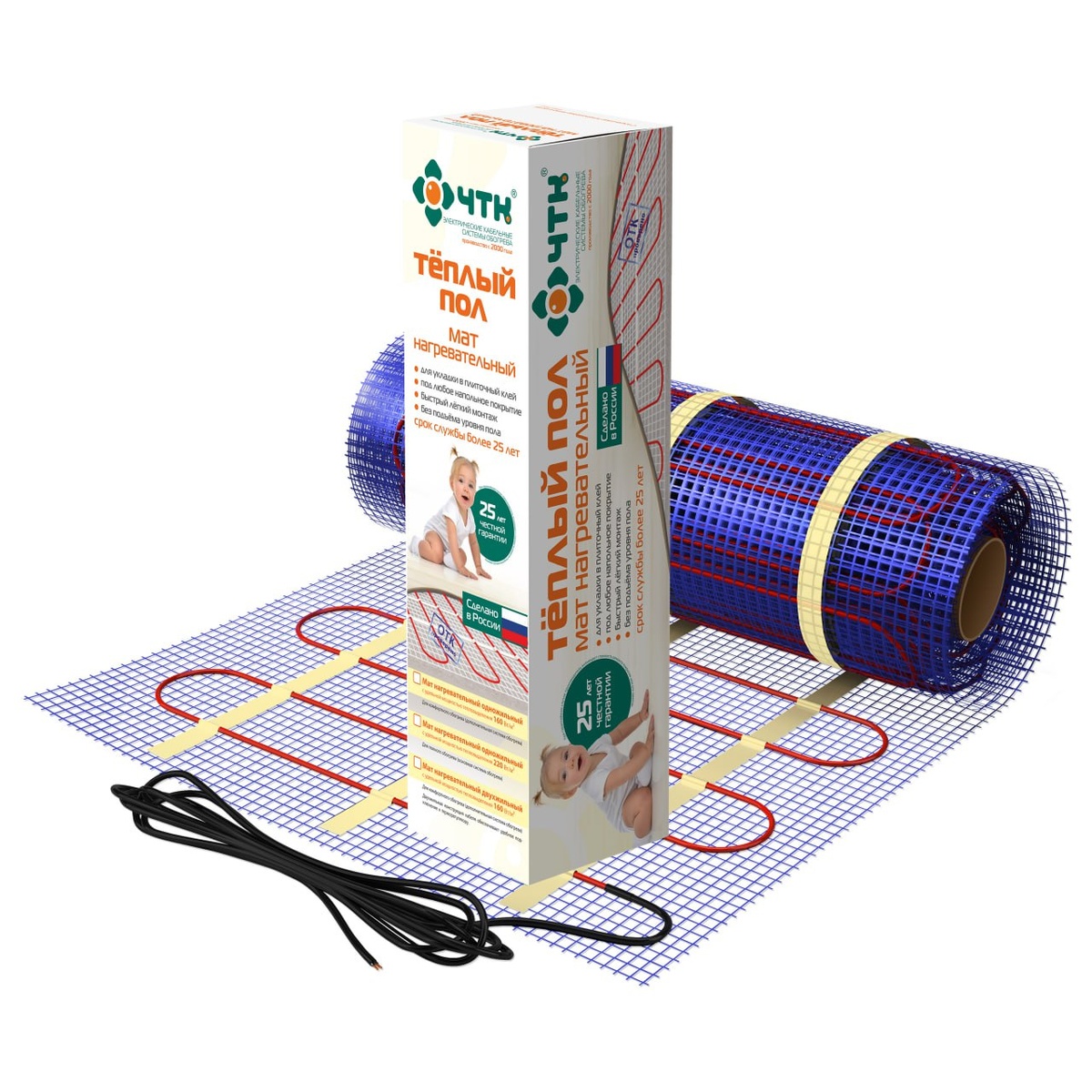 обогреваемых жилых и производственных помещений с постоянным пребыванием людей под любое напольное покрытие. Теплые полы на основе нагревательных матов с такой удельной мощностью более динамичнее – быстрее нагреваются и лучше поддерживают более высокую температуру, чем с мощностью 150 Вт/м2 и ниже. А благодаря уникальной технологии ЧТК® обеспечивающей стабильную удельную поверхностную мощность, имеют стабильную поверхностную температуру и гарантию надежной многолетней работы. Могут рекомендоваться в качестве системы полного основного обогрева в необогреваемых хорошо утепленных теплоэффективных помещениях. Предприятие дает честную 25-летнюю гарантию, а на топовую продукцию – 50 лет. Срок службы изделий торговой марки ЧТК® – более 50 лет. https://chtk.ru/production/nagrevatel'nyj_mat/dvuzhilnyie_160_vt_m/mnd_0,5_80