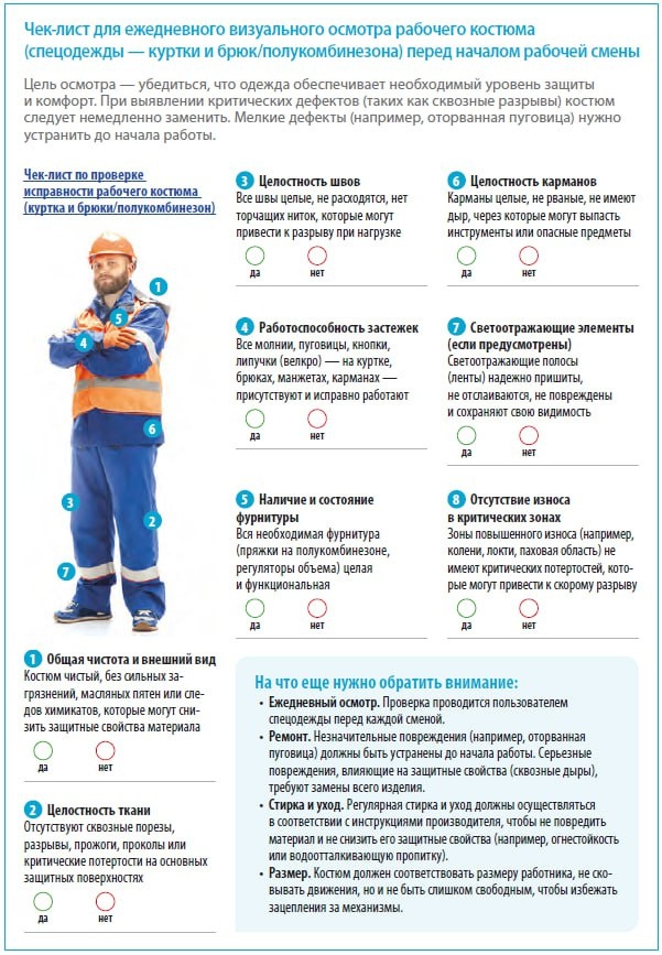 Публикуем еще один чек-лист — для визуального осмотра рабочего костюма.
