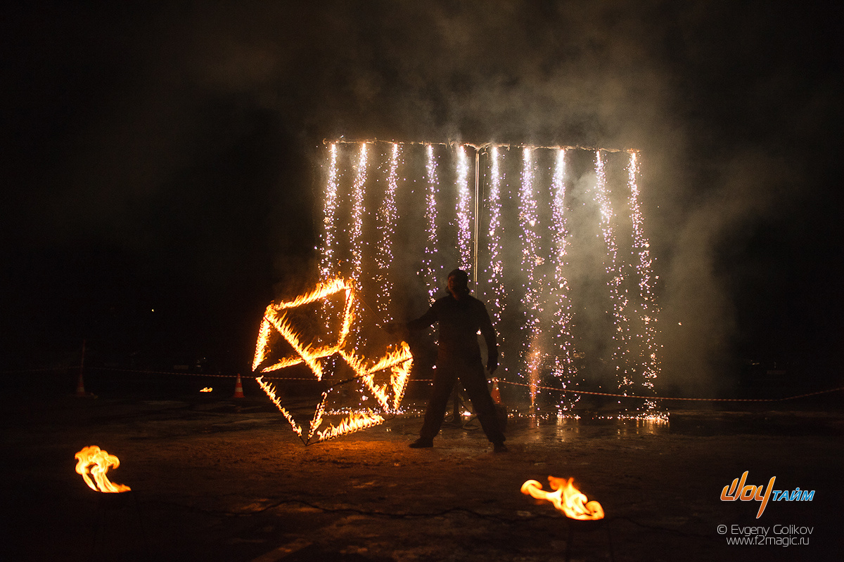 За эти годы мы познакомились и попробовали в деле множество огненных шоу, из Москвы, Московской области, Краснодара и Ярославля. Знаем все их сильные и слабые стороны готовы порекомендовать на любой бюджет. Обращайтесь, подберём то, что подойдёт именно вашему событию, либо создадим с их помощью новый постановочный номер. Такой, как мы делали, например, для финала вот этого события... Это касается, кстати, не только огненных шоу. Фото Евгения Голикова, отсюда. Ещё немного огня, цветных дымов и пиротехники! Почему мы?
