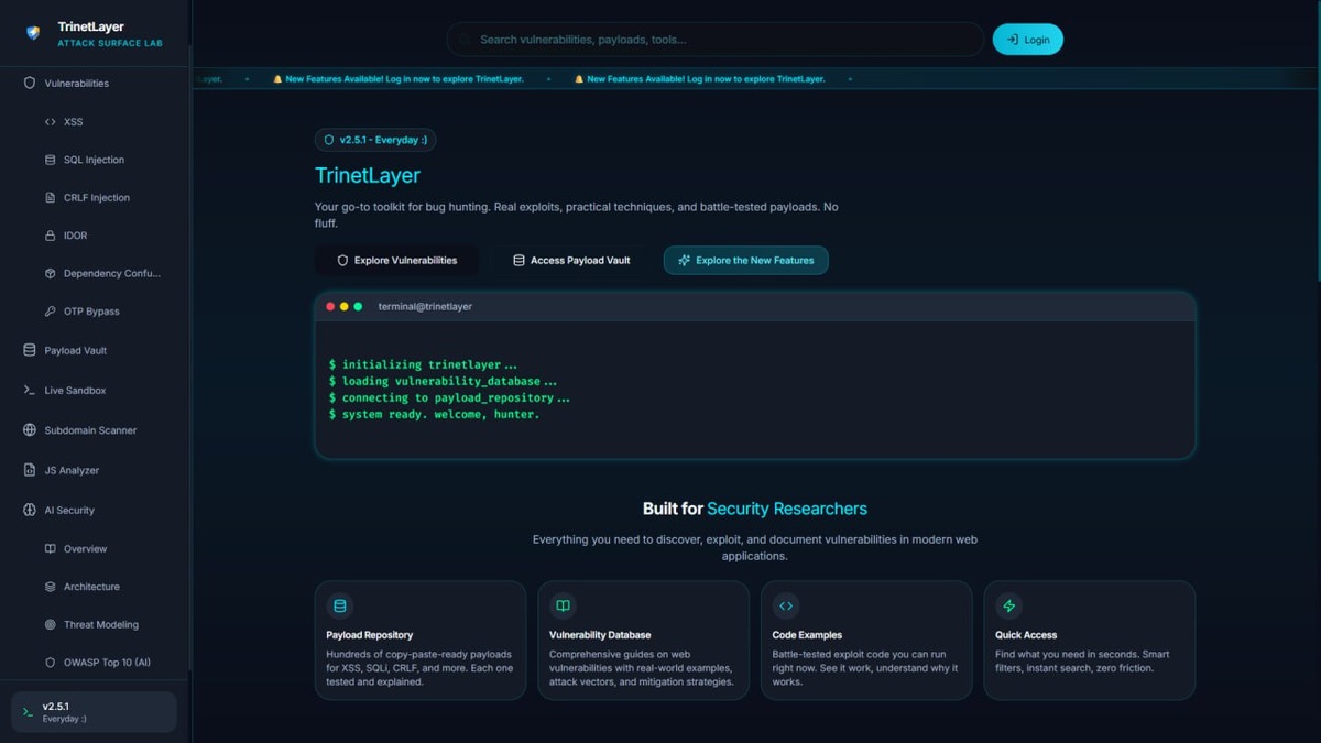 🔎TrinetLayer — инструмент для поиска уязвимостей. Реальные эксплойты, практические методы и проверенные в боевых условиях полезные нагрузки. Ничего лишнего.