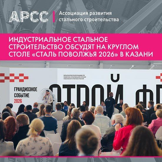 «Сталь Поволжья: настоящее и перспективы». В мероприятии примут участие эксперты АРСС- генеральный директор АРСС Александр Данилов и эксперт АРСС Татьяна Назмеева. ❗Спикером дискуссии станет 👨💻генеральный директор Ассоциации развития стального строительства (АРСС) Александр Данилов. В своём выступлении Александр Данилов раскроет тему «Индустриальное стальное строительство как инструмент повышения эффективности отрасли и выполнения национальных задач». Он отмечает, что фокусом работы АРСС в 2026 году является продвижение быстровозводимых технологий, включая модульное строительство и применение PREFAB, как наиболее эффективного ответа на запрос рынка в скорости, надёжности и экономии. 📌Также на круглом столе выступил эксперт АРСС Татьяна Назмеева с темой, посвящённой современным тенденциям в проектировании и нормировании стальных зданий различного назначения. 📍Мероприятие, организованное «Казанскими стальными профилями» (Участник АРСС), соберет на площадке Казанского ипподрома (