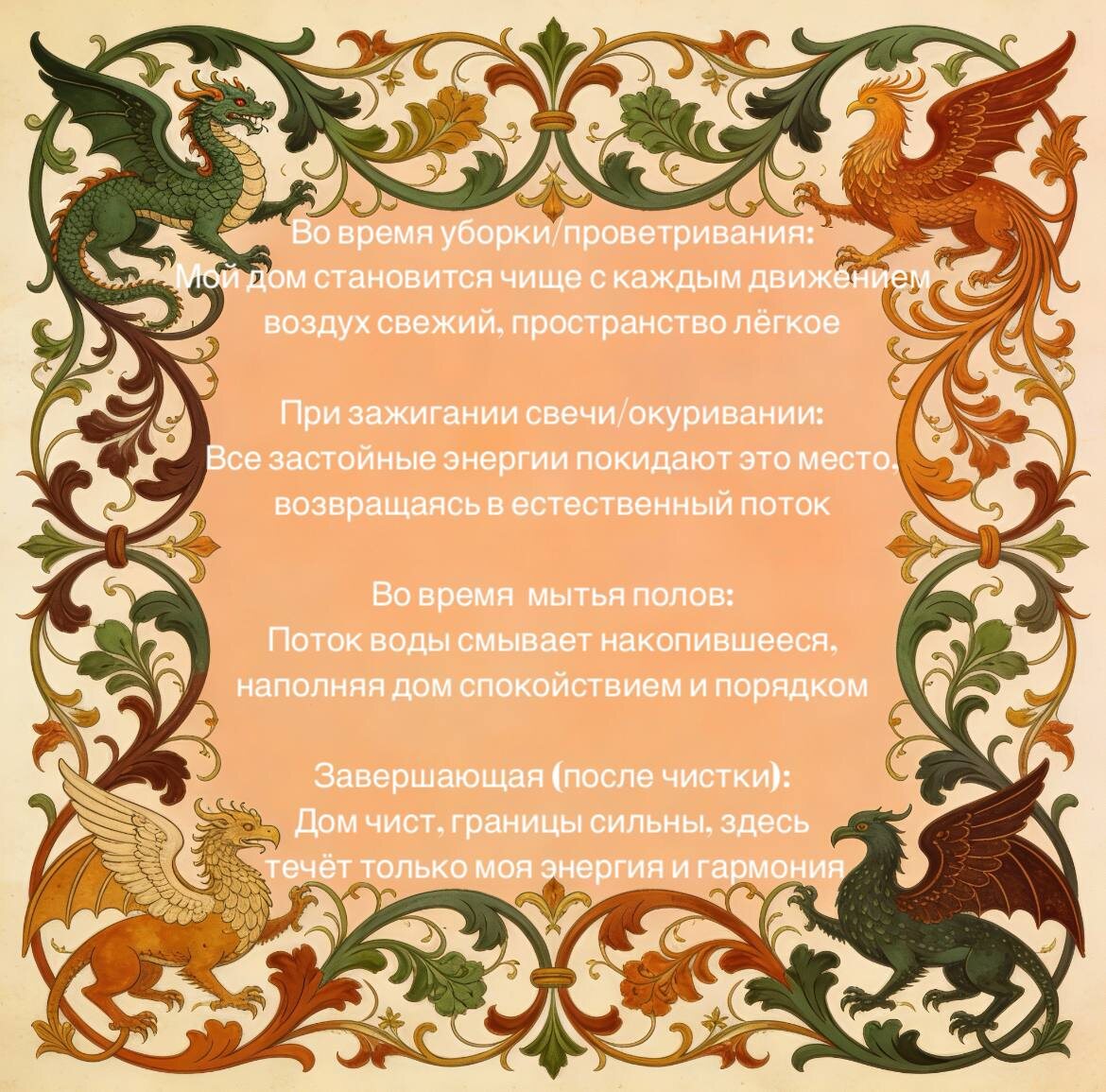 : • Чистка и защита: уборка/освящение дома (свечой, солью, травами), пост (молочное, без мяса), воздержание от излишеств. • Домашние дела: ремонт, организация, поездки короткие; благотворительность. • Умеренная активность (прогулки, йога), возвраты долгов, честные разговоры. Нежелательно: • Конфликты, операции, стрижка, алкоголь/мясо; мало двигаться — застой усиливает агрессию. • Провокации/скандалы.