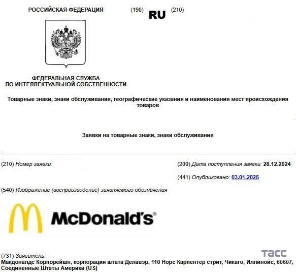 McDonald's возвращается? Компания зарегистрировала свой товарный знак в России.