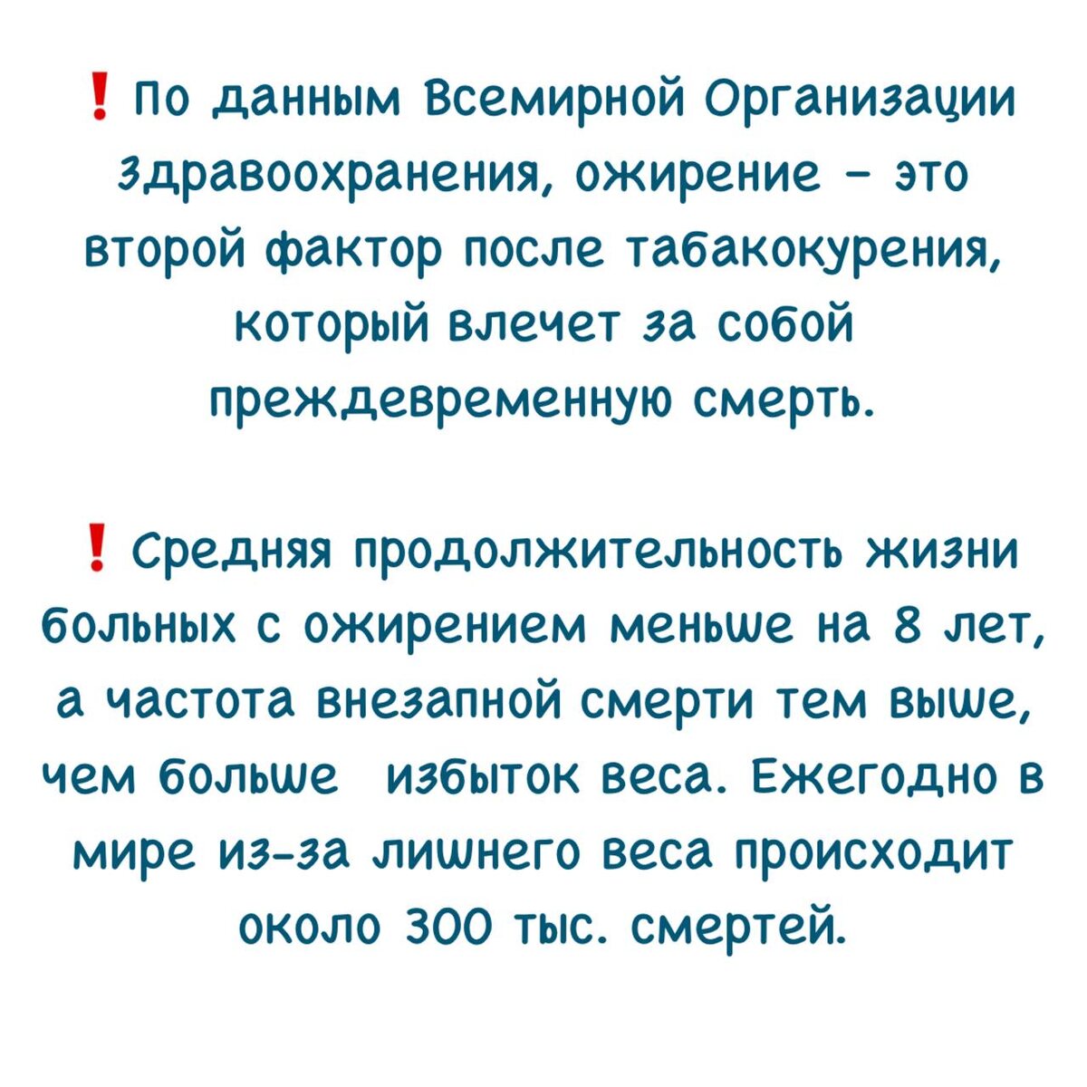 Из них около 890 миллионов - взрослые, а более 160 миллионов - дети и подростки. Ожирением страдает каждый восьмой человек на планете. Таковы данные Всемирной организации здравоохранения (ВОЗ) и исследований, опубликованных в The Lancet на 2022-2024 годы. Ожирение – самая серьезная угроза здоровью людей во всем мире. Невозможно быть полным и здоровым одновременно. Основные факты. ▫️Рост масштабов: С 1990 года показатели ожирения среди взрослых выросли более чем вдвое, а среди детей и подростков - в четыре раза (!). ▫️Избыточный вес: В 2022 году с избыточной массой тела (предожирение) жили 2,5 млрд взрослых. ▫️Дети: В 2022 году более 390 млн детей и подростков (5–19 лет) имели избыточный вес, из них 160 млн. страдали ожирением. ▫️Прогнозы: Ожидается, что к 2050 году более половины взрослых и значительная часть детей будут страдать от избыточного веса или ожирения.