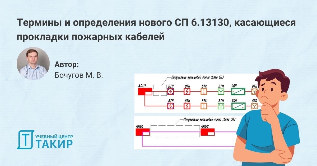 В новом своде правил СП 6.13130 появились не только новые термины, но и уже используемые в СП 6.13130.2021 термины практически все были переработаны и дополнены необходимой информацией. 📌 В рамках данной статьи Михаил Бочугов ознакомит вас с изменениями терминов и определений, касающихся прокладки пожарных кабелей. На мой взгляд, в новом своде правил наконец-то сочетается баланс между нормативными требованиями и рациональным подходом к выполнению своих функций системами противопожарной защиты. Какие темы Михаил раскрыл в данной статье: ✅ Кольцевая линия связи СПЗ ✅ Взаиморезервируемые линии связи СПЗ ✅ Открытая и скрытая электропроводка СПЗ ✅ Другие новые определения СП 6.13130.2025 🔗 Читать подробнее (https://clck.ru/3Ri5SQ) Напоминаем про курс для проектировщиков, который поможет пройти аттестацию в МЧС! 📆 Начало 18 февраля - забронируйте свое место (https://clck.ru/3Ri5UE)!