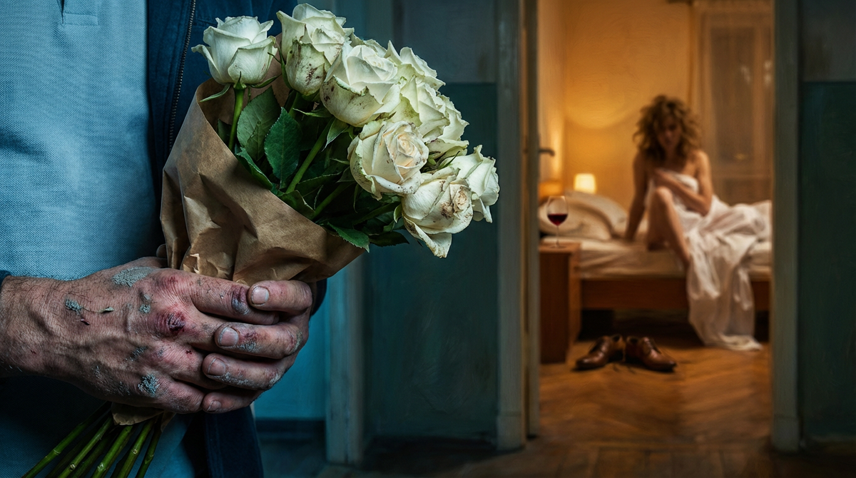 В прихожей он остановился. Взгляд снова упал на букет. Пятьдесят с лишним роз. Белых, невинных. Он взял букет. Медленно, методично перевернул его бутонами вниз и с силой запихнул в мусорное ведро, стоявшее у входа. Стебли хрустнули, ломаясь. Шипы вонзились в ладонь, но боли он не почувствовал.