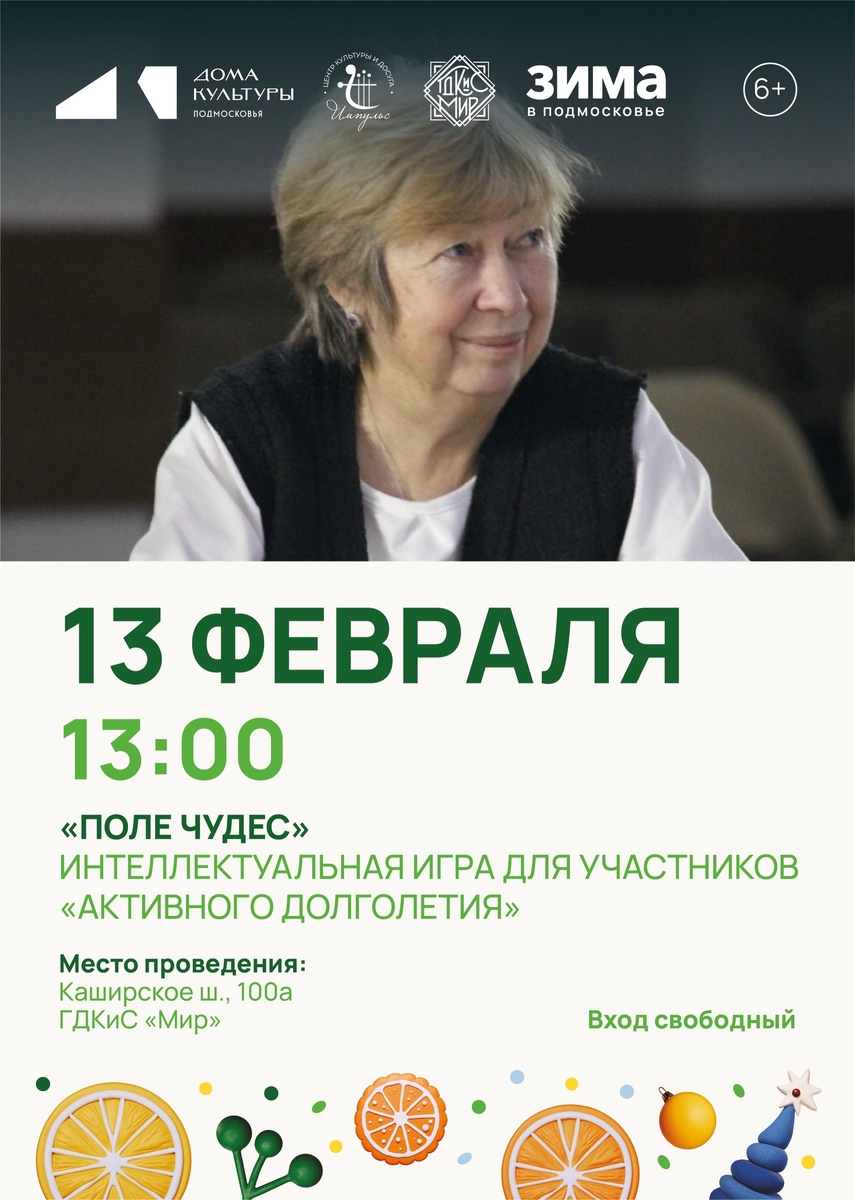✨ 13 февраля в 13:00 приглашаем участников проекта «Активное долголетие» на интеллектуальную игру «Поле чудес