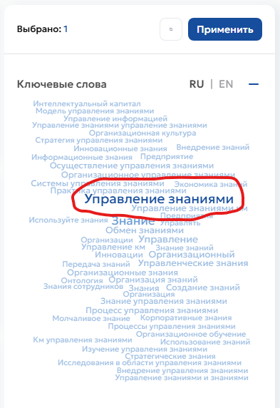 На сервисе https://platform.inventorus.ru/ по ключевым словам "Управление знаниями" найдено около 34000 научных публикаций. Интересная статистика получается, если отсортировать эту выборку: