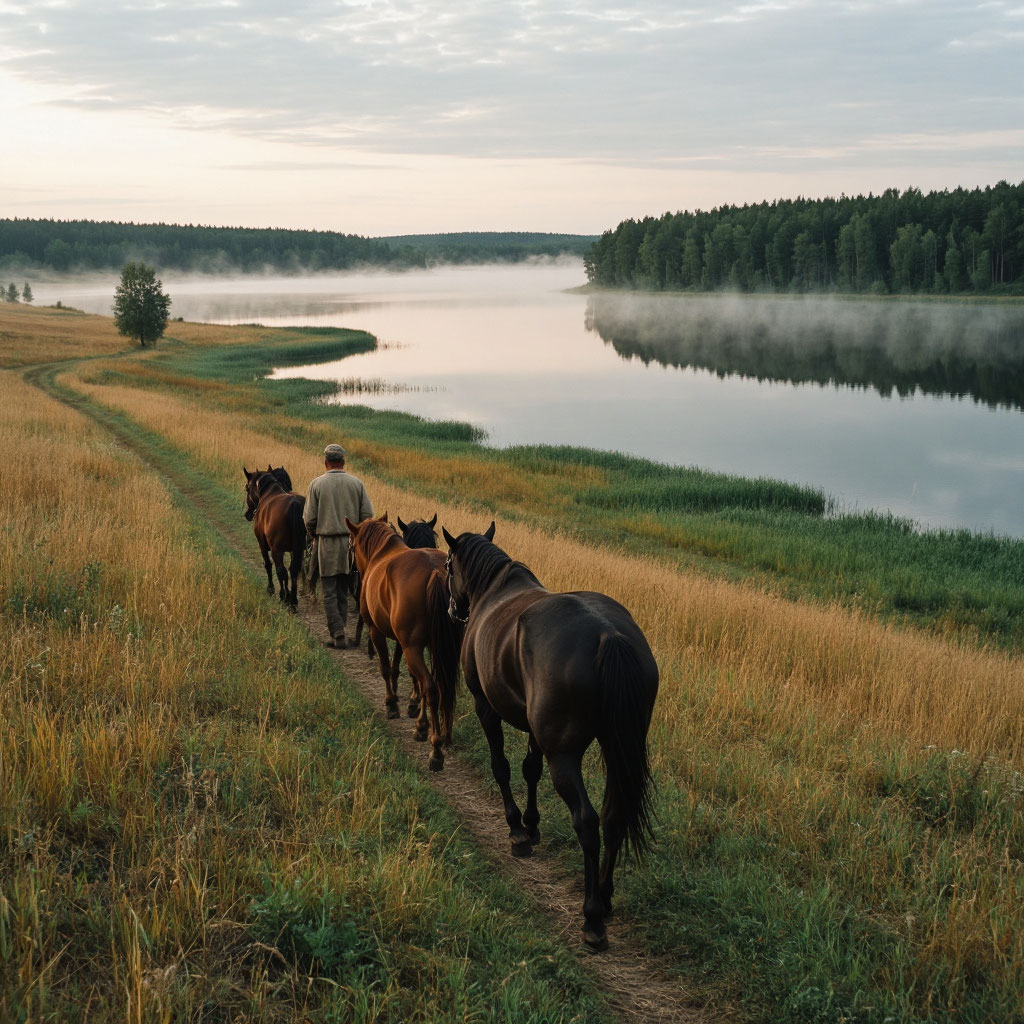 В 1963 году в Курганской области жил пастух по имени Иван. Он уже много лет пас лошадей в тех краях — знал каждую тропинку, каждый овраг, каждое озеро в округе. Но одно место он всегда обходил стороной: небольшое, но глубокое озеро за лесом, которое местные называли Чёрным. Говорили, что там тонули люди и животные, а вода будто бы затягивала их на дно. Старики шептались, что в озере живёт нечто древнее, оставшееся с тех времён, когда мир был совсем другим. Иван в эти сказки не особо верил — он считал, что всему есть объяснение, — но всё равно предпочитал держать табун подальше от Чёрного озера. Однако в тот год лето выдалось жарким и засушливым. Трава выгорала на солнце, и найти хорошее пастбище становилось всё сложнее. В конце концов Иван решил рискнуть и отвести лошадей к Чёрному озеру — там, по слухам, росли сочные травы, а вода была прохладной и свежей. Он понимал, что местные не зря боятся этого места, но выбора почти не оставалось: животные слабели, им нужны были корм и вода. Ран
