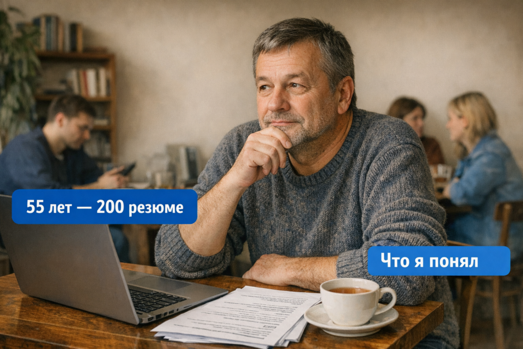 В 55 меня сократили. Отдел оптимизировали, а я — в числе «оптимизированных». 25 лет в одной компании, солидный опыт, думал — за неделю найду. Отправил 200 резюме за три месяца. Результат? 7 ответов. Три отказа, четыре «спасибо, мы вам перезвоним». Не перезвонили.