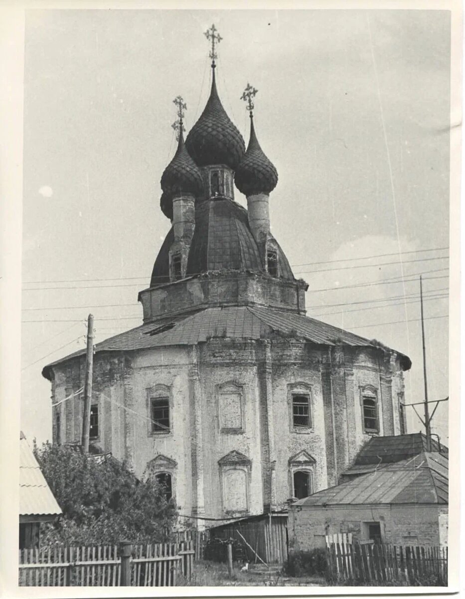 Первые сохранившиеся документальные записи, датированные 1805 годом, рисуют нам картину церкви, состоящей из четверика с алтарной частью, трапезной с папертью и колокольни, возвышавшейся над папертью. Но уже в апреле того же года, согласно записи в книге договоров на слуг и рабочих людей, было принято решение о разборке паперти и колокольни. Интересно, что в это же время Никольский придел был расширен "внутри" посредством демонтажа перегородок.