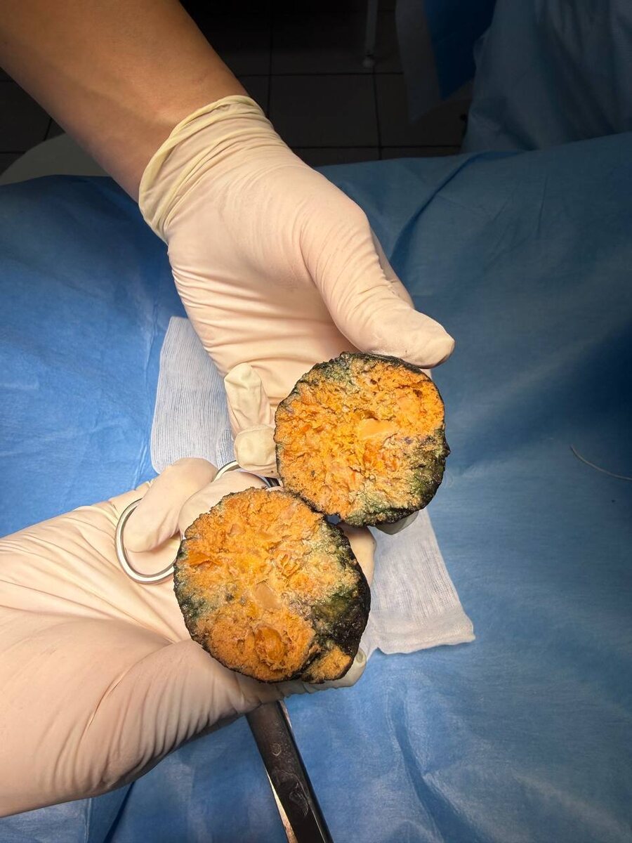 Хирурги РКБ им. Н.А. Семашко в конце ноября 2025 года столкнулись с редким случаем, когда любимый многими фрукт превратился в смертельную опасность для организма. А началось все банально: молодой человек перекусил тремя плодами хурмы и запил обычным молоком. В последующие дни он начал испытывать жуткие боли в животе. Обследования показали наличие фитобезоара – плотного камня, который образуется в желудке из-за большого количества неперевариваемых растительных волокон и танинов, особенно в незрелых плодах, слипшихся в комки. В итоге – несколько эндоскопических операций и разрезанный желудок молодого гурмана, камень в котором вырос до невероятных размеров.