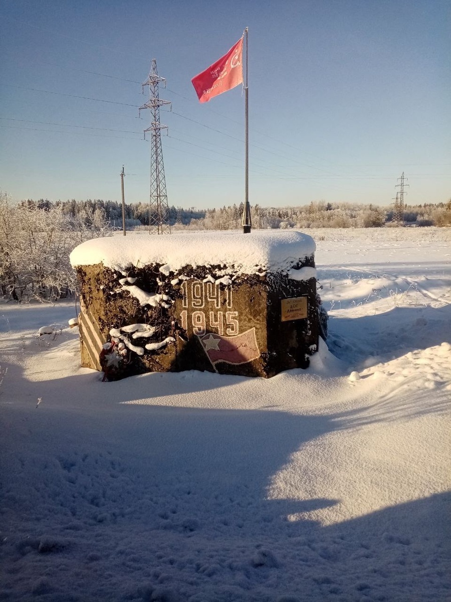 Слушая Владимира, смотрим в окно. День морозный, но зато красивый, солнечный. Притормаживаем около ДОТа, оставленного как напоминание о линии обороне.