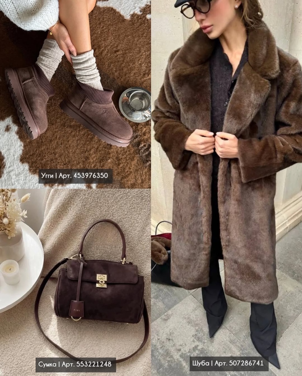 Есть подборки, которые выглядят как вдохновение, а есть такие, которые сразу превращаются в готовый гардероб. На фото — именно второй случай: благородные коричневые оттенки, мягкая замша, пушистая фактура, спокойная база и точные акценты в вишнёвых тонах. Здесь всё про ощущение «дорого и собранно», но без лишней строгости: вещи легко комбинируются между собой и дают разные настроения — от уютного города до эффектного выхода.