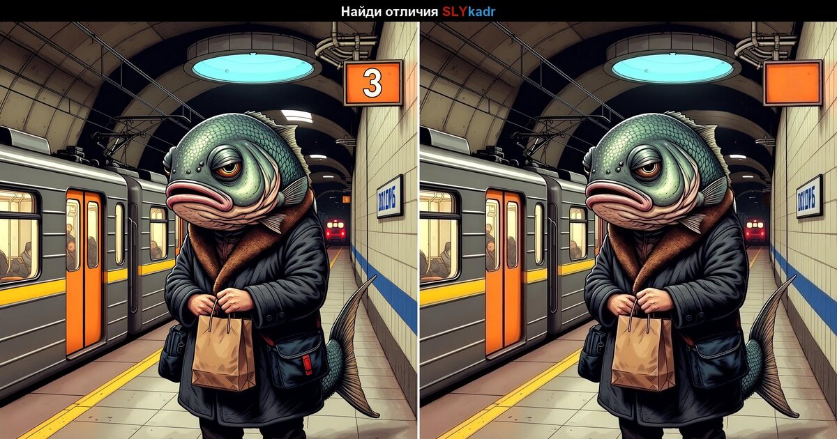 Перед вами необычная сцена в метро… но не спешите листать дальше. Мы подготовили для вас игру «Найди отличия». Две почти одинаковые картинки, но несколько деталей всё же не совпадают.