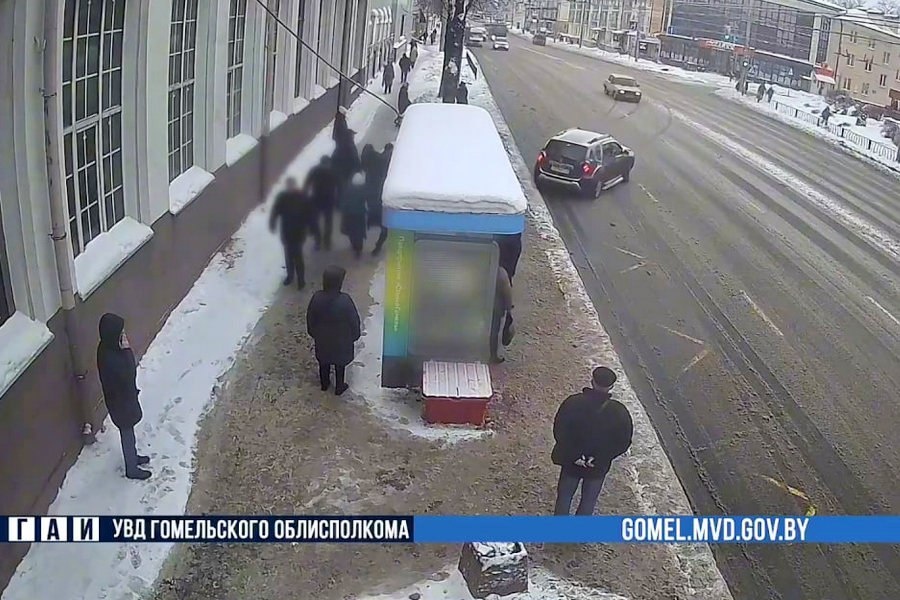 В Гомеле машину вынесло на остановку общественного транспорта
