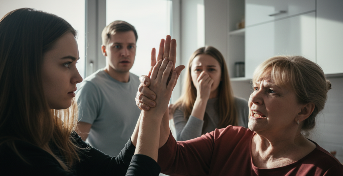 Свекровь схватила Юлю за предплечье, пытаясь вырвать ключи. Её пальцы, унизанные кольцами, больно впились в кожу.