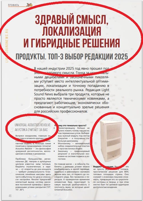 ! Есть ли жизнь после Самары на Марсе?.. Всех нас, конечно же, интересует этот вопрос. И если смотреть вооружённым глазом 🍺🍻🥂🍷🥃🍸🍾, то мы увидим... мы увидим две, три, четыре... а лучше всего, конечно, пять звёздочек 🎖🎖🎖🎖🎖. Но, слава Богу, люди не пьют ушами, а то бы гонке вооружений несть конца... Однако есть такое специальное, невредное для здоровья вооружение — называется "знания" 🔎. Вот, скажем, идёт презентация нового активного комплекта Universal Acoustics для небольшого проката (видео с Конференции предоставим по запросу) — смотрите, слушайте. Вооружайтесь 🥊! Или другой пример: в рубрике "Выбор редакции" журнала Light.Sound.News названы три лучших продукта 👏 и три лучших проекта 🫶 за 2025 год; и там и там Universal Acoustics — читайте, комментируйте. Поправляйте здоровье💋!