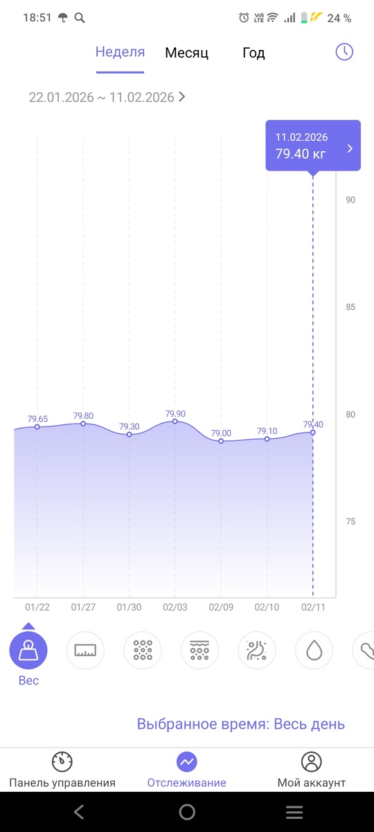 Вес так и держится 79-80 кг.