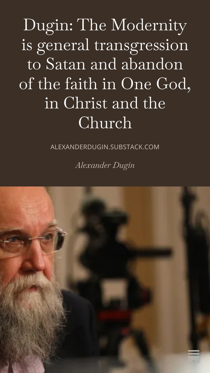 📜 Dugin: The Modernity is general transgression to Satan and abandon of the faith in One God, in Christ and the Church