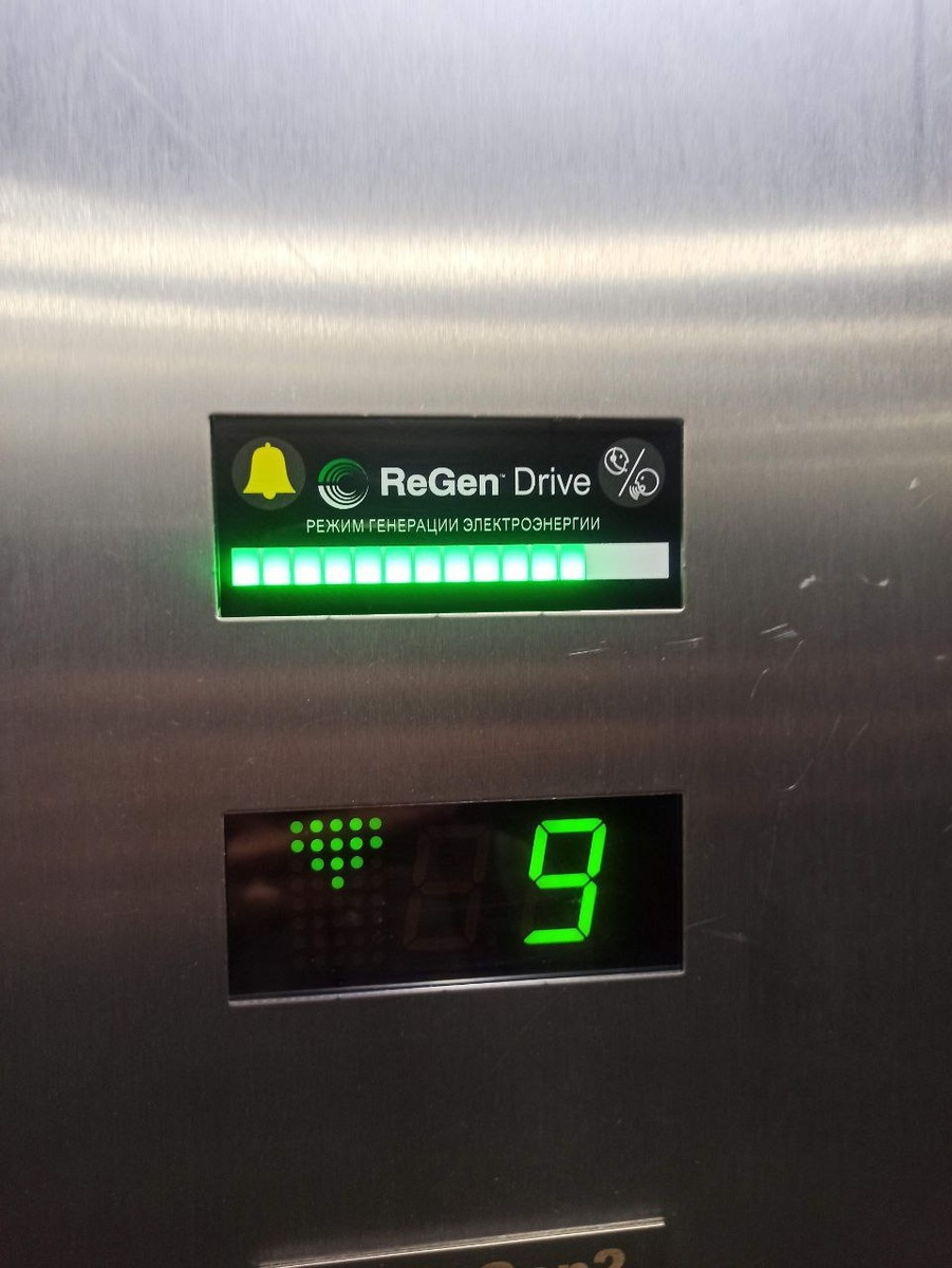 Вот такой интересный лифт с режимом генерации электроэнергии встретился мне сегодня в Московской области, г. Апрелевка