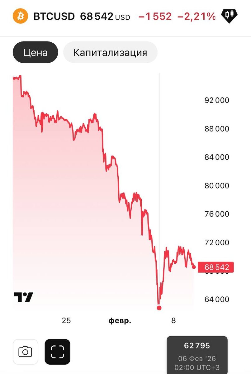 📉 На днях криптовалюта пережила одно из самых мощных падений за все время. Биткоин, который всего 3 месяца назад торговался на максимальных исторических значениях (120 тыс. $ за штуку) обвалился до 60 тыс. $. Уже начали писать про ликвидации капитала на сотни миллиардов долларов. Я с такими формулировками вообще не согласен. Если у меня был условно 1 биткоин, то он так и остался 1 биткоин, никто его не «ликвидировал», он никуда не растворился. Да, в моменте поменялась рыночная оценка его стоимости. Но этот минус будет исключительно виртуальный. До тех пор, пока вы не продали активы. В этот момент вы зафиксировали убыток и больше с ним ничего сделать уже не получится. Если сложно справляться с такими падениями, вспомните криптозиму 2022-2023. Тогда биткоин с 60 000 $ упал до 16 000 $. Очень болезненное падение. Зато уже в 2024 он вырос до 70 000, а потом и 100 000 $. Так что те, кто покупал во время падения, был очень в хорошем плюсе и до сих пор в нем остается. Но им на это потреб