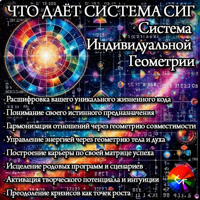 Каждый человек рождается со своей индивидуальной геометрией — сочетанием энергий, талантов, задач и точек роста. СИГ помогает эту геометрию увидеть, понять и использовать.