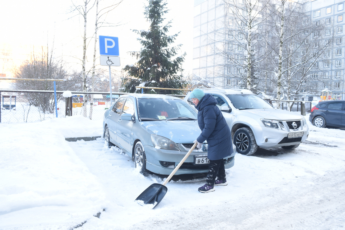Жители многоэтажки на улице Остинской вышли на субботник в морозный выходной, чтобы очистить двор от снега.