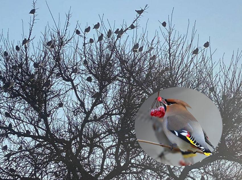 Огромная стая кочующих свиристелей с хохолками прилетела в Волгодонск