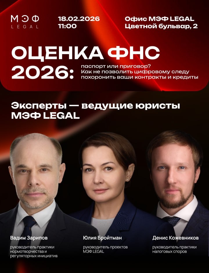 С 2026 года каждый бизнес в России получил от ФНС новый ключевой документ — «цифровой паспорт надежности». Это не просто формальность. На основе десятков критериев — от зарплатных нормативов до дисциплины отчетности — система автоматически сформирует вашу комплексную оценку в виде официальной выписки о деловой репутации. Этот паспорт станет главным аргументом при: 🟠участии в госзакупках (44-ФЗ и 223-ФЗ) 🟠проверке контрагентов 🟠заключении любых значимых договоров 🟠получении кредитов и привлечении инвестиций Цена управленческих и учетных ошибок вырастет в разы. Но для подготовленных компаний — это шанс получить решающее преимущество на рынке. 📌Приглашаем на наш бизнес-завтрак, где мы заглянем «под капот» системы ФНС и ответим на волнующие вопросы: 🟠Как правильно "прочитать" выписку? 🟠Можно ли оспорить оценку? 🟠Как интегрировать данные ФНС в свою систему проверки контрагентов? 🟠Как выстроить новый бизнес-процесс, чтобы он не создавал хаос? 🗓18/02/2026 🕚11:00 📍Офис МЭФ LE
