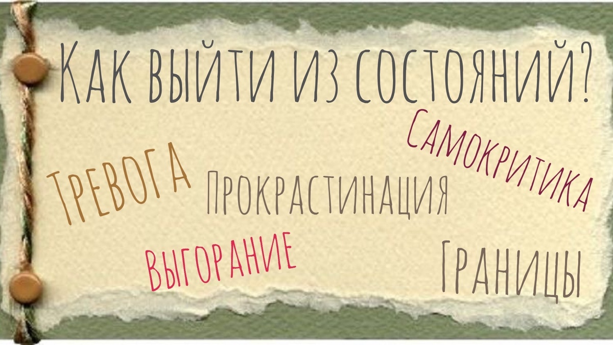 Какое из этих состояний — тревога, выгорание, прокрастинация, сложности с границами или самокритика — беспокоит вас сильнее всего сегодня?