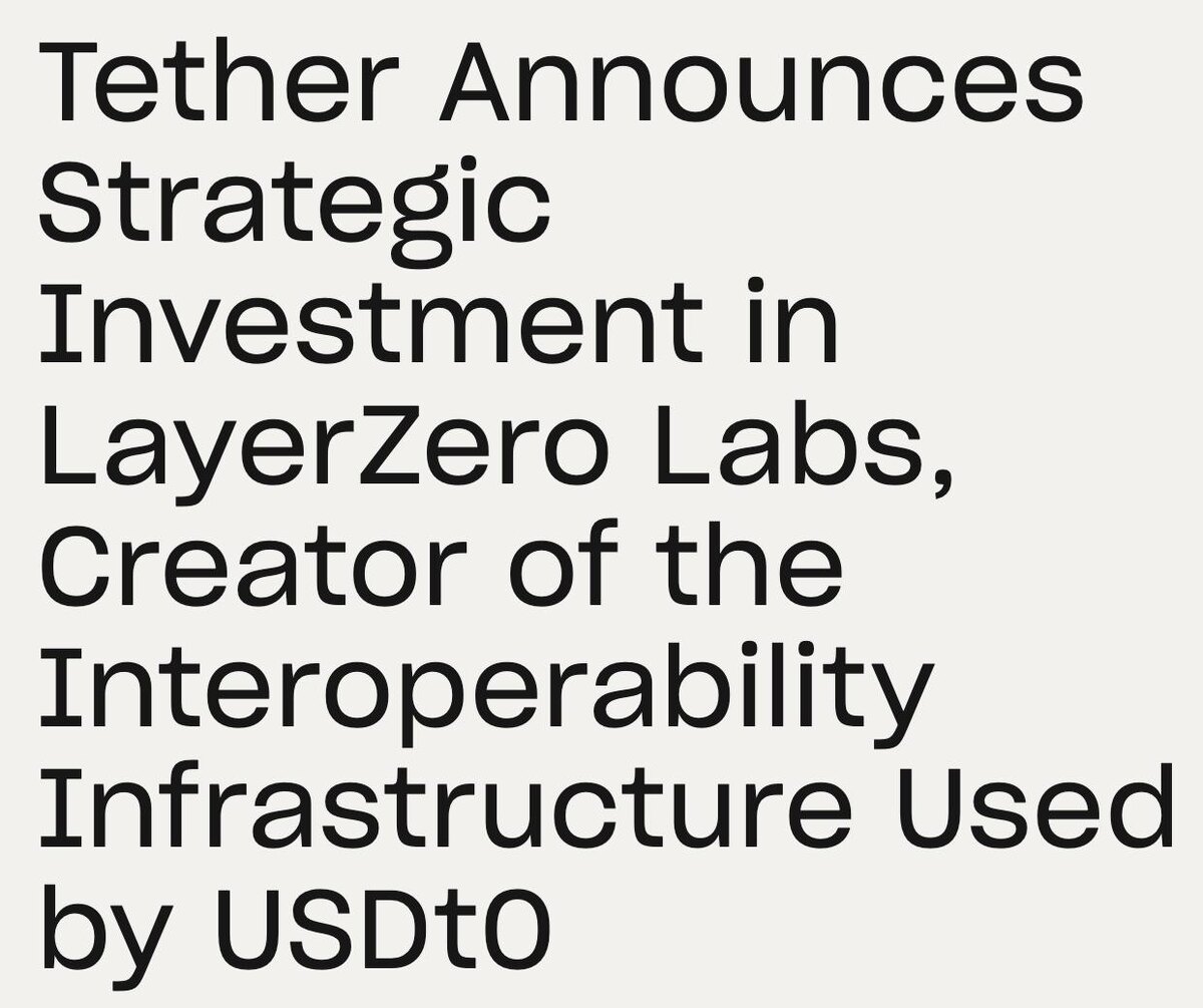 πΈ #ZRO ΠΠΎΠΌΠΏΠ°Π½ΠΈΡ Tether ΠΈΠ½Π²Π΅ΡΡΠΈΡΠΎΠ²Π°Π»Π° Π² LayerZero (Π°Π½ΠΎΠ½Ρ)