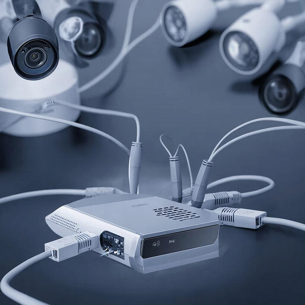Если вы ищете самый бюджетный вариант, посмотрите направление систем видеонаблюдения. Среди предложений вы найдёте 2‑ и 4‑канальные регистраторы с PoE‑портами