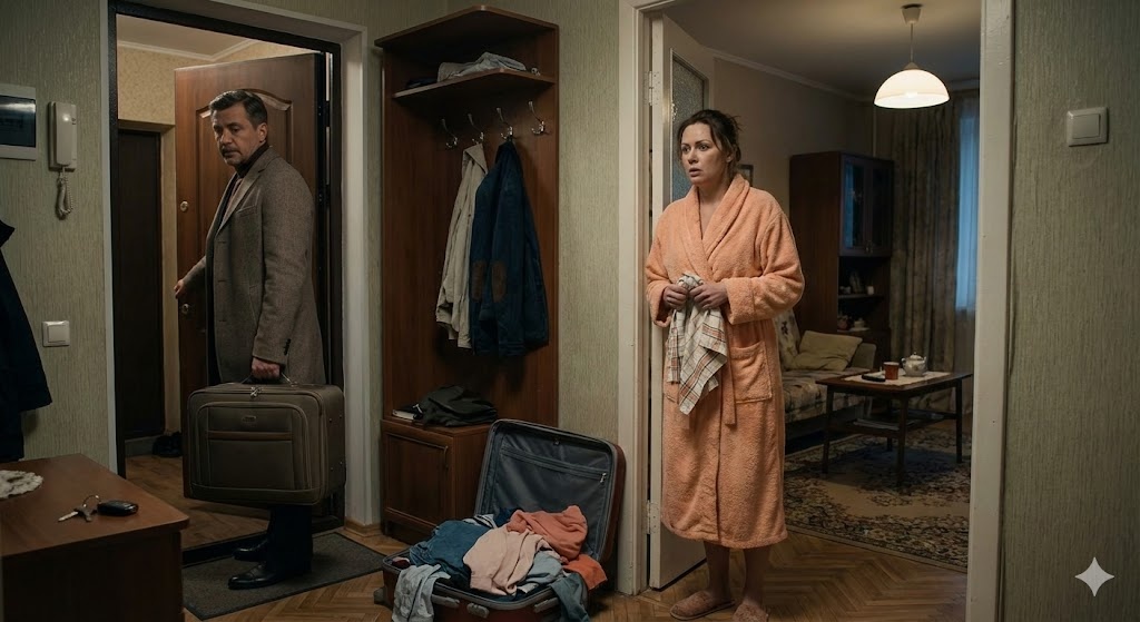 Вера стояла в проеме двери, сжимая в руках кухонное полотенце. На ней был тот самый злополучный махровый халат — уютный, персикового цвета, который Андрей когда-то подарил ей на 8 Марта. Теперь этот халат стал символом ее поражения.
