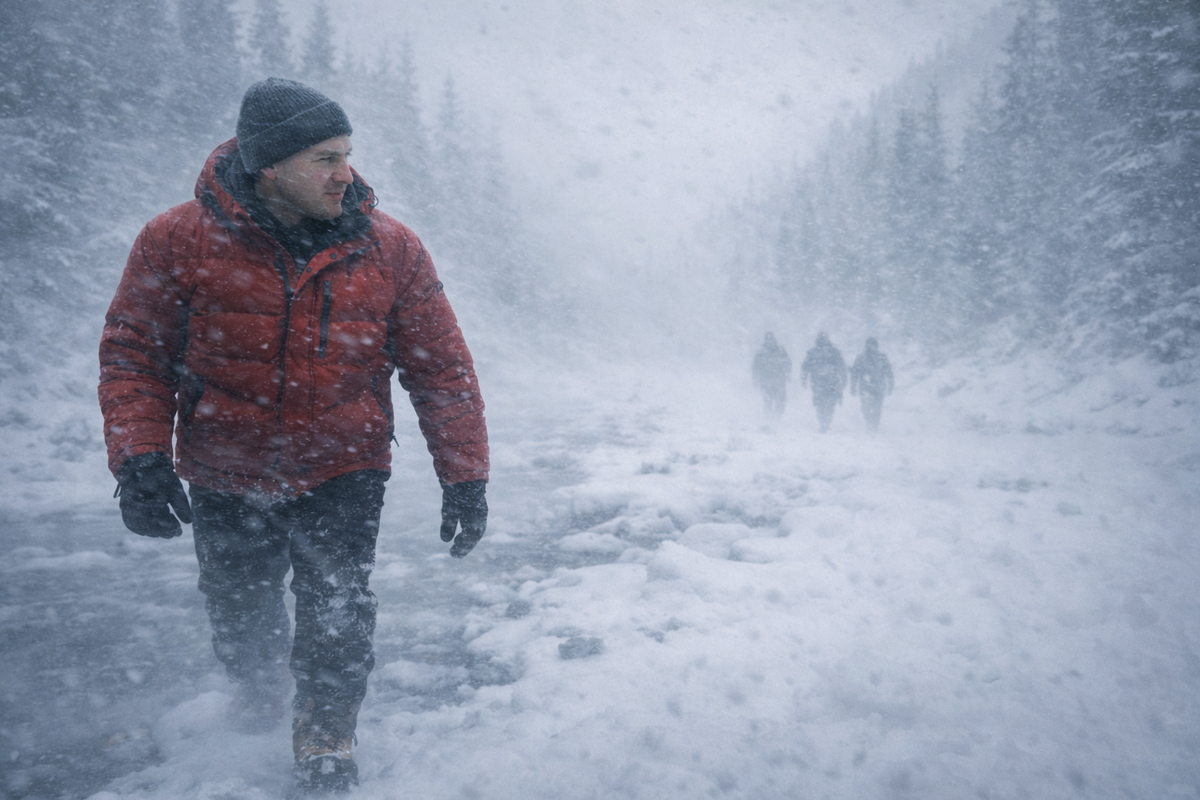 Мы забежали в лес и начали спускаться. Снега занесло уже прилично, особенно это чувствовалось, когда мы бежали вдоль реки. Я бежал впереди, и мне предстояло пробивать дорогу в глубоком снегу. Я попробовал “включить” пограничное зрение, и у меня получилось. Я отметил про себя, что сразу бежать стало легче, и мир стал как бы шире, больше — как будто сидишь в кинотеатре и смотришь фильм на большом экране. Я время от времени оборачивался и смотрел, как там парни. Общая скорость нашей группы была небольшая из-за снегопада.