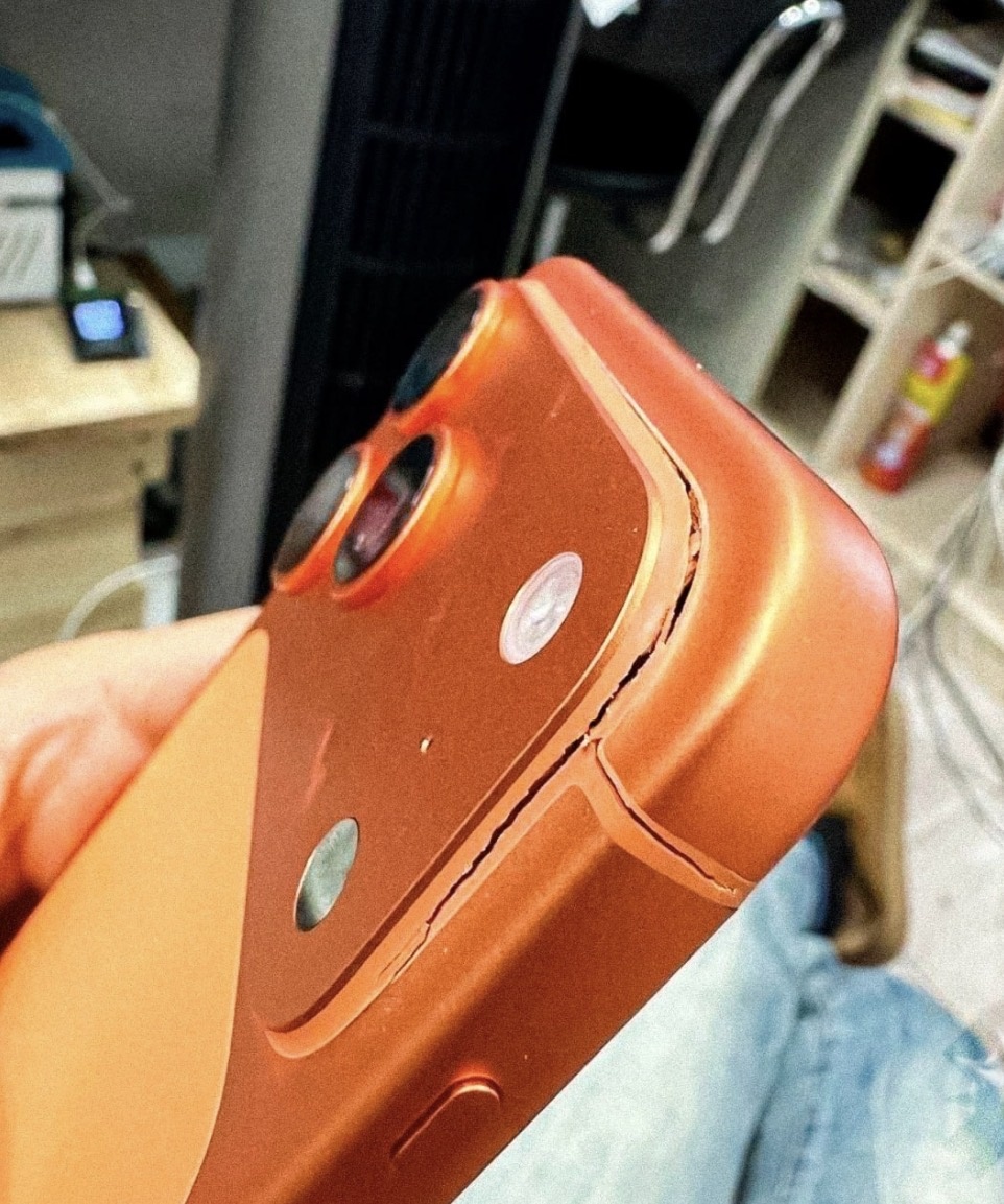 Появились сообщения о возможном конструктивном недостатке нового iPhone. Один из владельцев устройства заявил, что при снятии жесткого чехла корпус телефона треснул по линии антенного шва — в месте соединения модуля камеры с основной частью монолитного корпуса.