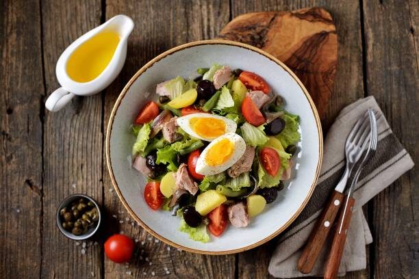 · Идеальный баланс: В одном блюде есть белок (тунец, яйца), сложные углеводы (картофель), клетчатка и витамины (овощи).
