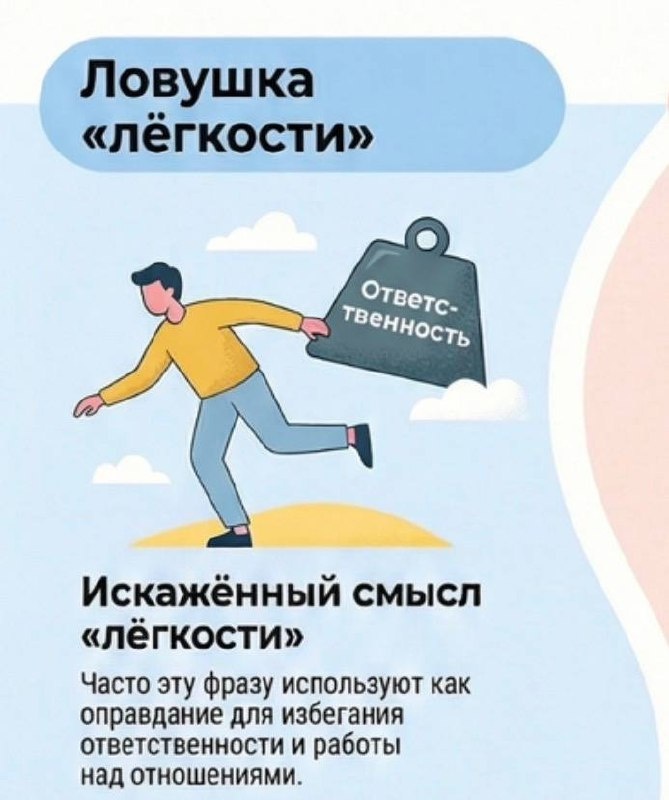 Каждый раз, слыша фразу, что «в отношениях должно быть легко» я улыбаюсь и вспоминаю: …множество неудобных разговоров… неловких моментов… сомнений и желание послать всё к черту… Но, если вы оба выбираете послать к черту своё ЭГО, а не друг друга, то получает супер приз!!! 🏆 Именно благодаря этим неудобствам создаются близость и доверие — т.е. всё то, что сейчас делает из Я и Ты = МЫ 🖤 П.с.: Для меня легкость в отношениях — это в первую очередь говорить свободно на любые темы. А что для вас легкость?
