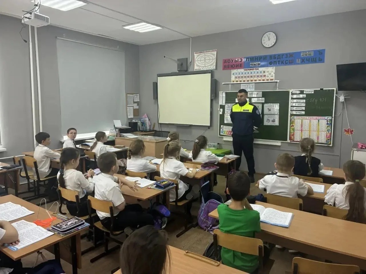 ️⃣ Юным пешеходам — о главном: сотрудник Госавтоинспекции провёл профилактическую встречу в школе 👮 В ходе встречи инспектор напомнил детям о важности соблюдения Правил дорожного движения и рассказал о наиболее распространённых опасных ситуациях, с которыми могут столкнуться юные участники дорожного движения. Особое внимание было уделено использованию световозвращающих элементов в тёмное время суток. ℹ️ Сотрудник Госавтоинспекции объяснил, что наличие таких элементов на одежде, рюкзаках и аксессуарах значительно повышает видимость пешехода на дороге и помогает водителям своевременно заметить ребёнка. 📱Отдельной темой беседы стало использование мобильных телефонов и наушников при переходе дороги, а также при передвижении на самокатах. 🎧 Детям разъяснили, что отвлечение на гаджеты и громкая музыка значительно снижают внимание и могут привести к дорожно-транспортным происшествиям. ❗️Сотрудник Госавтоинспекции призвал школьников быть максимально внимательными и не пользоваться теле