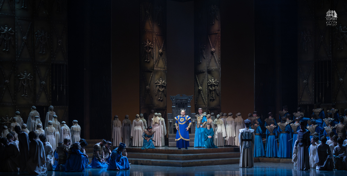 Оперную программу XLIV Международного фестиваля имени Ф.И. Шаляпина 8 февраля продолжил «Набукко» Дж.Верди. Этот спектакль был поставлен в Татарском академическом театре оперы и балета имени Мусы Джалиля в 2018 году режиссером Ефимом Майзелем – он сменил более раннюю постановку, осуществленную в Казани в 2003 году Дени Криефом. Время идёт вперёд, многое меняется в нашей жизни, в том числе, и на оперных подмостках. Но в театре им.Джалиля один принцип остается неизменным – казанская публика хочет видеть на сцене красоту, желает на протяжении всего спектакля находиться в состоянии восторга. Здесь, в Казани, на родине Шаляпина неприемлемы минимализм, радикализм, режиссёрские «изыски»… Больше всего здесь любят и ценят красивые, масштабные голоса и, повторюсь, красоту на сцене. Такую вкусовую прививку публике здесь в своё время, я думаю, сделал именно Шаляпинский фестиваль.